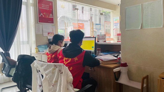 下午两点半,刘书芳等8名大学生志愿者到达湓浦社区后,提前详细了解核酸检测流程、点位布置、物资保障、注意事项等,明确志愿者岗位任务分工。志愿服务过程中,志愿者们分布在检测点现场的各个岗位,各司其职、各尽其责,积极引导社区居民做好分组、扫码预约、维护秩序等工作,并及时督促居民间隔站位、佩戴好口罩。
