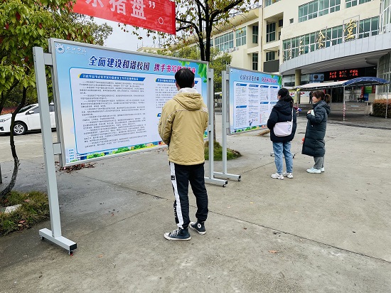 活动通过展板的形式进行宣传,展板内容紧紧围绕平安建设主题,以图文形式传达中央关于平安中国建设的一系列决策部署、省委省政府关于全面建设和谐江西、平安江西的工作要求,展示了宿舍安全、交通安全、防范电信网络诈骗、防疫安全、毒品安全、心理健康、宗教安全等方面内容,引导师生增强自我防范意识。