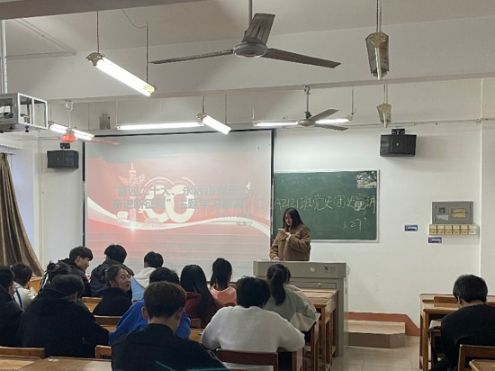 根据团中央、团省委“喜迎二十大、永远跟党走、奋进新征程”学习教育部署安排,在广大团员中深入开展党史宣传教育,发挥其“以史鉴今、资政育人”的政治责任和历史使命。”3月27日晚,永利yl23411集团组织学生党史、团史宣讲团深入各班进行党史、团史教育宣讲活动。