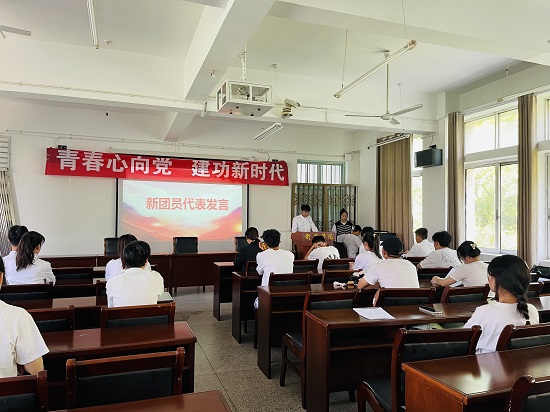 仪式上,团委副书记孔红霞带领新团员们在鲜艳的团旗下进行了庄严的宣誓仪式,全体参会人员一起重温了入团誓言。新团员代表刘书芳和优秀团员代表陈海龙同学分别作了入团感言和事迹分享。随后,学院思政科副书记刘晓梅和团委副书记孔红霞为新团员颁发、佩戴团徽。