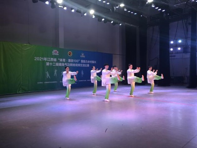 2021年12月23日江西省“体育·惠民100”暨省第十二届健身气功交流比赛在鹰潭市体育中心举行,受全球新冠疫情影响,本次比赛形式为线上视频参赛,线下裁判评分。来自全省21个社会部,8个高校部的200多名运动员参加了此次比赛。