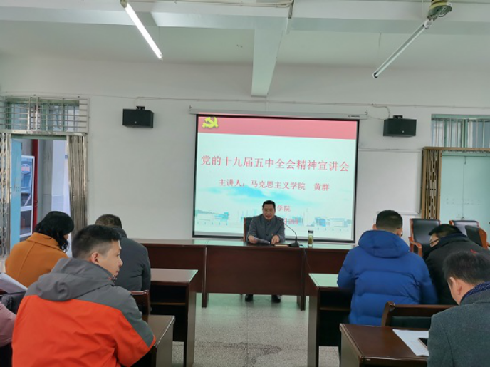 为深刻领会党的十九届五中全会的精神实质和丰富内涵,推动学习活动深入扎实开展,12月2日下午,永利yl23411集团在向学楼301会议室召开党委中心组(扩大)学习会暨党的十九届五中全会精神宣讲会,邀请马克思主义学院黄群副教授作党的十九届五中全会精神宣讲。学院党政班子成员、科室负责人、全体党员和全院教职工参加了宣讲会,宣讲会由院党委书记付和忠主持。
