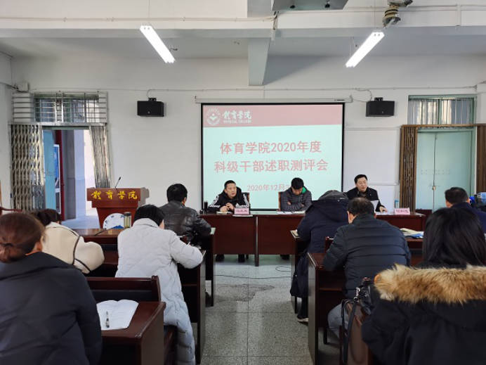 12月31日下午,永利yl23411集团在向学楼301召开2020年度科级干部述职测评会,院长段宝斌、党委书记付和忠、副书记冯亚兵及全体教职工参加,测评会由付和忠主持。