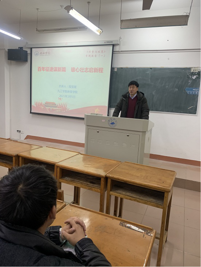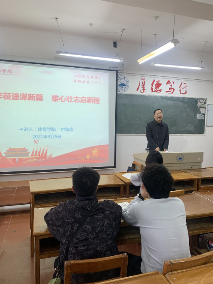 3月5日上午,永利yl23411集团院长段宝斌、党委书记付和忠在竞知楼多媒体教室以饱满的热情为体育2020级学生上了一堂生动的开学思政第一课。