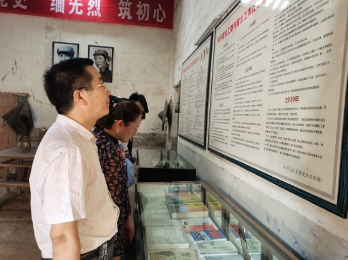 离开烈士纪念塔,大家来到中共赣北工委与红军游击大队部旧址参观。整个旧址作为岷山革命根据地纪念馆,分为“岷山革命斗争史简介”“中共赣北工农红军著名烈士事迹简介”“赣北游击队活动大事记”“旧址、遗物”四大部分,展示了刘为泗等革命先辈一段段可歌可泣的英勇事迹。大家观看革命先辈们用生命践行初心使命,用行动捍卫青春理想,以奉献实现人生价值的光荣事迹,细读赣北游击队队歌,依旧令人心情激荡,对红军游击大队的介绍,对革命先烈的介绍,让大家对岷山赣北革命根据地有了更进一步的了解,对革命先烈抛头颅、洒热血多了无限敬仰,对他们的初心和使命有了更深一层的认识。