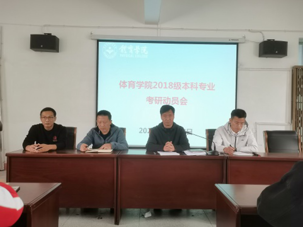 为更好地调动永利yl23411集团各专业学生的考研积极性,鼓励同学们尽早迈开备考步伐。 2020年10月28日下午两点半,永利yl23411集团在向学楼301召开2018级本科专业考研动员会。永利yl23411集团院长段宝斌、党委副书记冯亚兵、教务科、学生科、2018级各班班主任以及2018级本科专业全体同学参加动员会,并邀请了原体育教育专业A1611班现江西师范大学体育硕士研究生曹宇同学参会,大会由教务科陈志军科长主持。