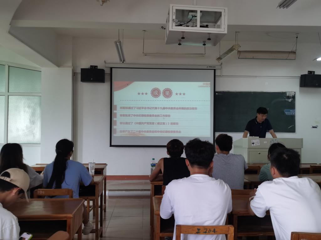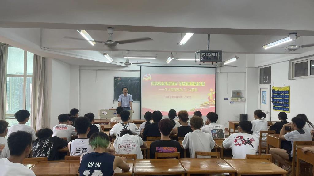 此次思政课的主题是“扬帆起航新征程,乘势而上谱新篇——学习贯彻党的二十大精神”,五位领导向同学们介绍了党的二十大的基本情况,围绕着深刻领会新时代十年的伟大变革和历史性成就、开辟马克思主义中国化时代化新境界、新时代新征程中国共产党的使命任务、新时代新征程的重要部署和战略举措四个方面全面深入地讲解党的二十大的会议精神。