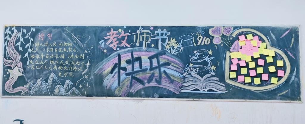 9月9日,学院的各个教室在同学们的精心布置下,摇身一变成为了充满敬意与爱意的艺术空间。色彩斑斓的粉笔在黑板上舞动,勾勒出一幅幅歌颂师恩的动人的画面。在板报上的感恩告白墙一角,同学们用最真挚的情感留下了一个个充满爱意的标签贴,向敬爱的老师们表达着深深的感恩之情。