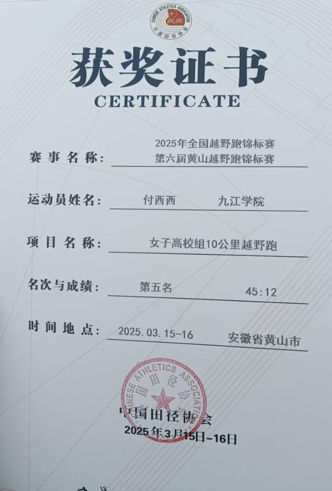 3月15 -16日,2025年全国越野跑锦标赛、第六届黄山越野跑锦标赛在安徽省黄山市完美落幕,吸引来自全国各地45支队伍800余名运动员参赛。本次赛事由中国田径协会、黄山市人民政府主办,也是作为第十五届全国运动会田径项目积分赛事。