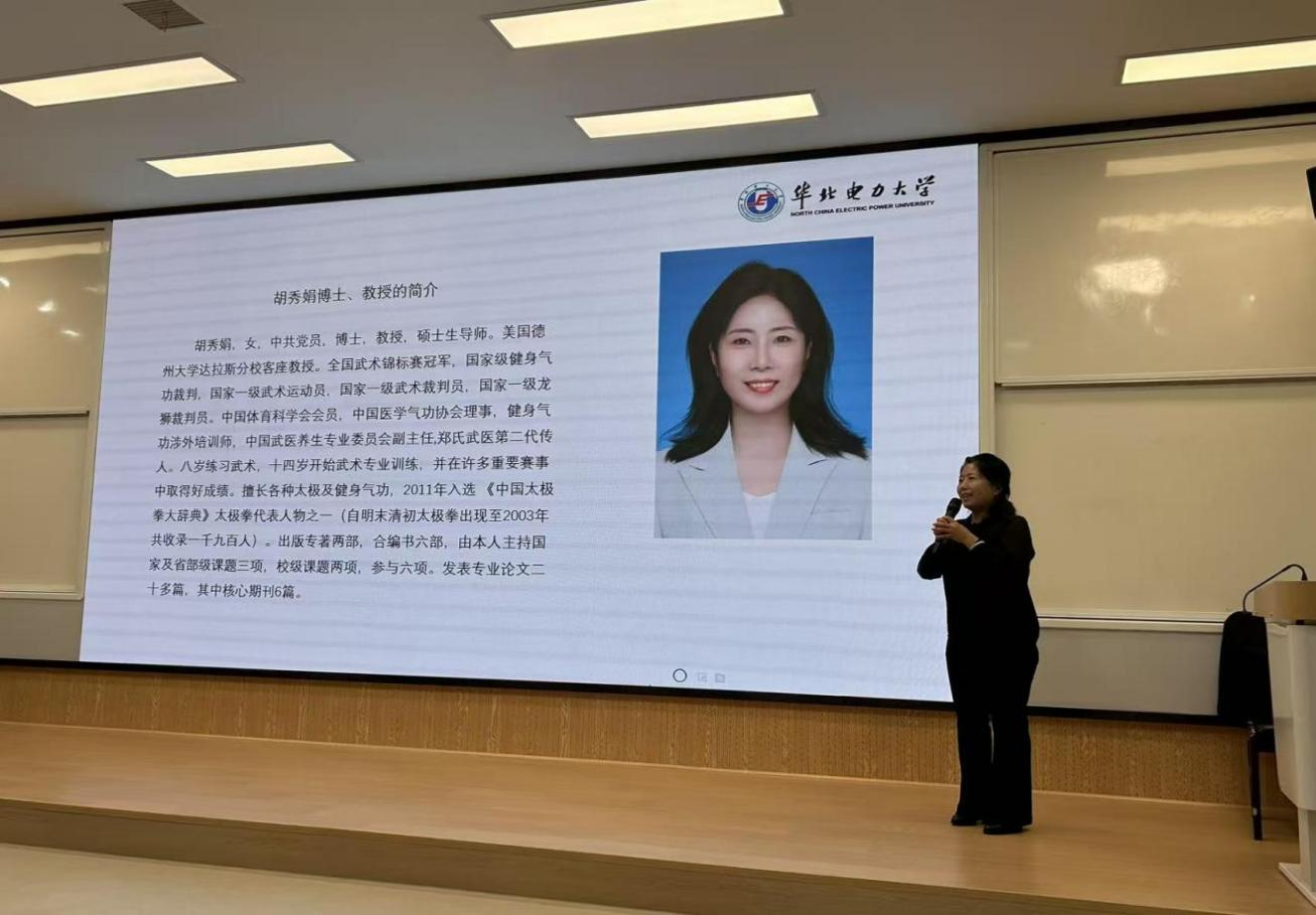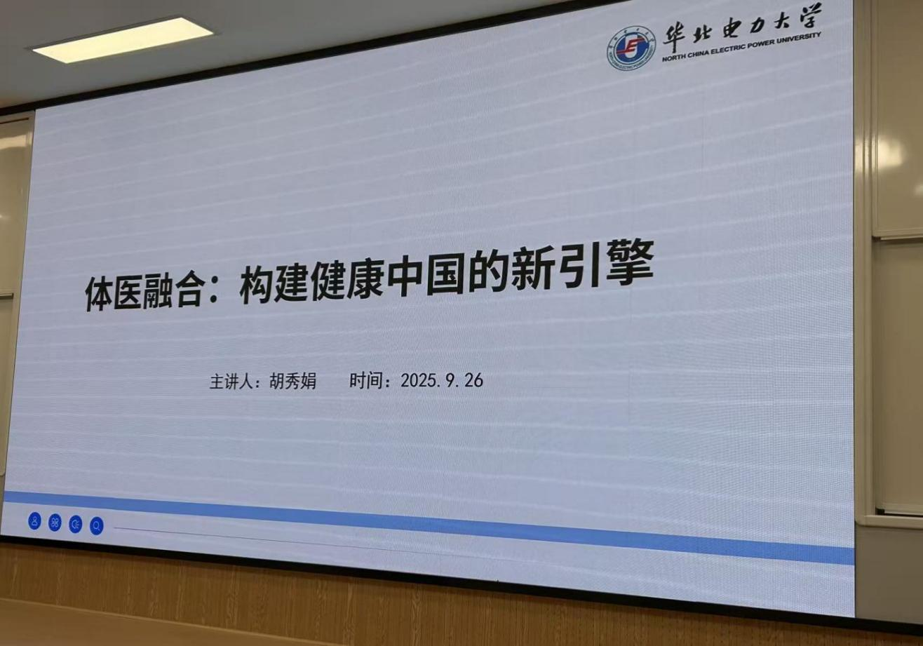 为深化体医融合理念,服务“健康中国”战略,赋能体育学科发展,9月26日晚上19点,在竞知楼阶梯教室,永利yl23411集团荣幸邀请到华北电力大学胡秀娟教授为我院师生作“体医融合,构建健康中国新引擎”的学术讲座,会议由永利yl23411集团副院长宋涛主持,学院200余名师生聆听了讲座。