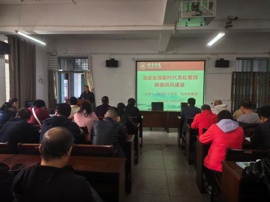 报告会上,孙剑奇教授以“浅谈加强新时代高校教师师德师风建设”为主题,围绕“加强高校教师师德师风建设的特殊重要性”“高校教师师德师风建设中存在的问题”“高校教师师德师风建设的基本要求”“加强高校教师师德师风建设的具体措施”四个方面展开深入阐述。他结合自身教学科研与育人实践,深刻剖析了师德师风建设在高校人才培养、学科建设、社会声誉塑造中的特殊价值,直面当前师德师风建设存在的短板,并从思想引领、制度保障、实践培育等维度提出具体举措,为新时代高校教师师德师风建设提供了兼具理论高度与实践温度的思考。