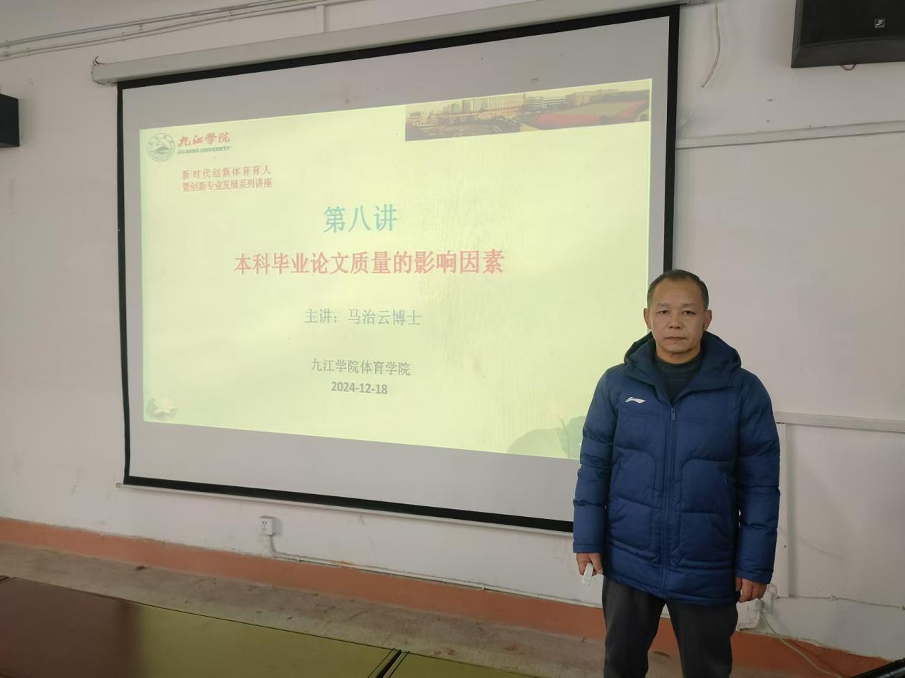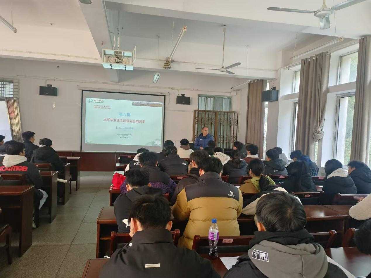 2024年12月18日,新时代创新体育育人暨创新专业发展系列讲座第八讲开讲了。本次邀请永利yl23411集团教师马治云博士为做题为《本科毕业论文质量的影响因素》的讲座。该讲座内容是马老师主持的江西省教育科学“十四五”规划2023年度课题《本科毕业论文质量促进的系统动力学建模与仿真研究》的系列研究成果之一 。