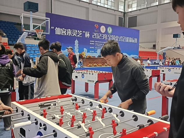 2023年11月11日,“仙客来灵芝”杯2023年全国桌式足球锦标赛在江西九江职业大学体育馆开幕。本次比赛吸引了全国37支队伍参加,运动员来自上海、江苏、浙江、安徽、广东、江西等省市,共计600余人。我校桌式足球校队在赛前两个月便开始集训,积极备战,由永利yl23411集团毛敏和刘柏君老师作为教练员,在此次比赛中,带领九院学子最终取得1金、2银、1铜的好成绩。