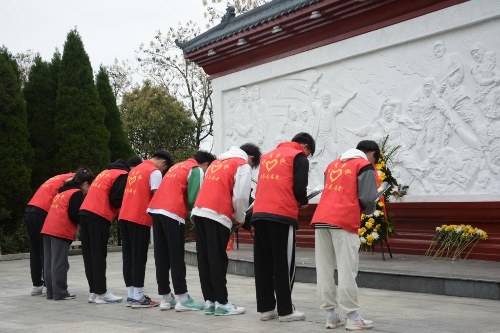 在革命烈士纪念碑前,同学们列队整齐、神情肃穆,寄托着对烈士的崇敬与缅怀之情,悼念默哀并敬献花篮。随后,在现场工作人员的讲解下,深入学习革命先烈前赴后继、无私奉献的英勇事迹,学习老一辈革命志士在逆境中艰苦奋斗、为革命坚持到底、战斗不息的精神。