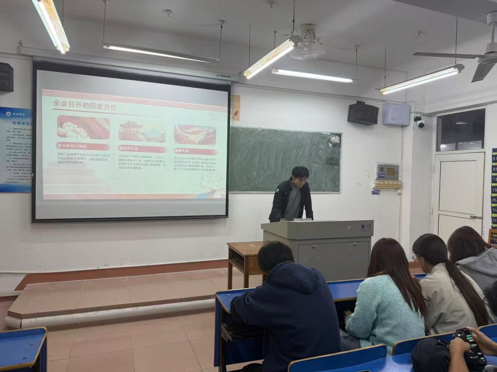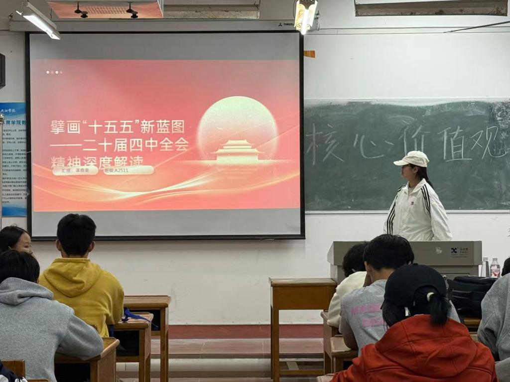 活动中,各班首先传达学习习近平总书记在党的二十届四中全会上的重要讲话和全会精神,强调认真学习党的二十届四中全会精神对于青年一代深刻理解国家治理体系和治理能力现代化宏伟蓝图、坚定理想信念、强化责任担当的重要意义。