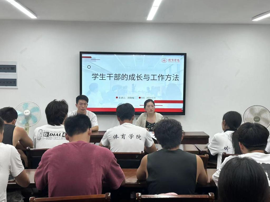 开班仪式结束后,思政科副科长刘晓梅以《学生干部的成长与工作方法》为题讲授本次培训的第一课。她通过学生干部的角色定位、高效工作方法、领导力培养及案例分析与实践应用四个方面的详细讲解,让同学们进一步认识到青年骨干的责任与担当。