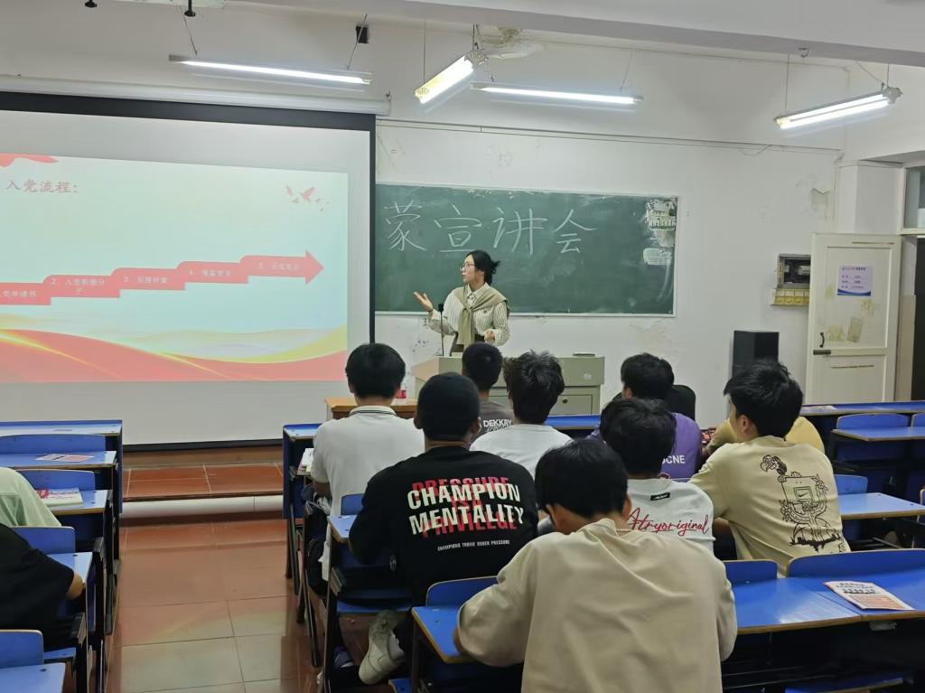 活动上,他们详细解读了党的基本知识、发展党员的工作流程、原则和方针,使新生们对党员发展有了初步的认识,并重点讲解了入党申请书的撰写技巧、入党积极分子的培养与考察等关键环节的具体要求。通过结合自身入党经历和学校党员发展中的真实案例,让新生们对入党流程有了更加直观、深入的理解。