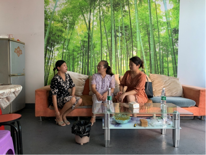 在和学生爸爸的聊天当中我们得知,学生爸妈五年前已经离异,这五年他没有出去打工,就在老家务农或者在家附近做点临时工方便照顾孩子与家庭。他去年年后总是感觉喉咙不舒服,一开始以为是普通的感冒,喉咙发炎就没有在意,到五月份的时候觉得吃饭都困难了才去医院检查,一查出来就是晴天霹雳,是食道癌,从手术到现在一直都是配合医生治疗,吃药、化疗,花了不少钱。在与爸爸的聊天中途还与学生开了视频,学生见到爸爸的时候流眼泪了双手遮面久久没有说话,然后李月娟老师不停的开导她,问她在南昌的工作情况,一个女孩子在外要注意安全,工作之余也不要忘记学业,下班之后要多与爸爸通电话。学生也一一应下。