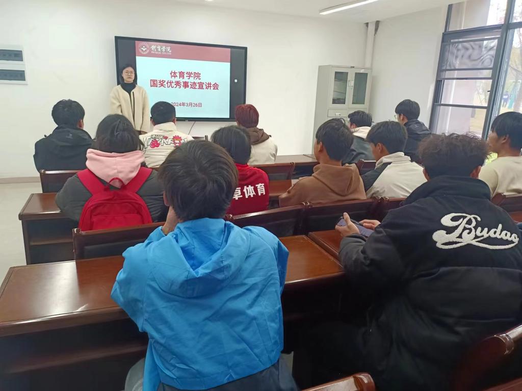 结合学校的学风建设月活动充分发挥国家奖学金获得者的示范作用,激励体育学子向榜样看齐、向使命聚焦,营造优良风。3月26日下午永利yl23411集团紫薇园学院学生活动室召开2022-2023年度国家奖学金优秀事迹宣讲会,宣讲会由学生会主席刘佳鑫主持。