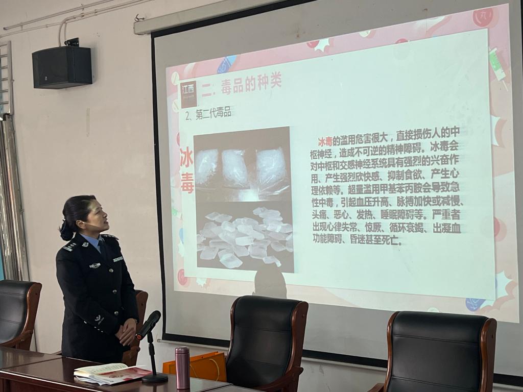 本次讲座邀请到江西“映山红”戒毒服务团“青云”分队宣讲团成员、江西省女子强制戒毒所四级高级警长邹敏华警官作宣讲。