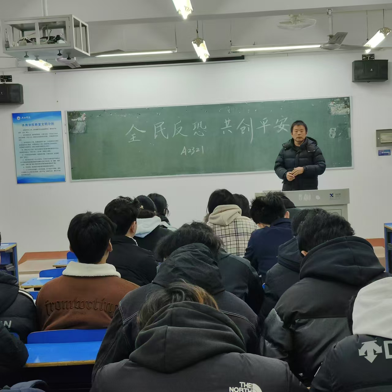 此次主题班会的召开,进一步提高了同学们识别反恐袭击的实用知识,提高大学生处置突发暴力事件的应急能力,共同营造“全民反恐 共创平安”的和谐校园环境。