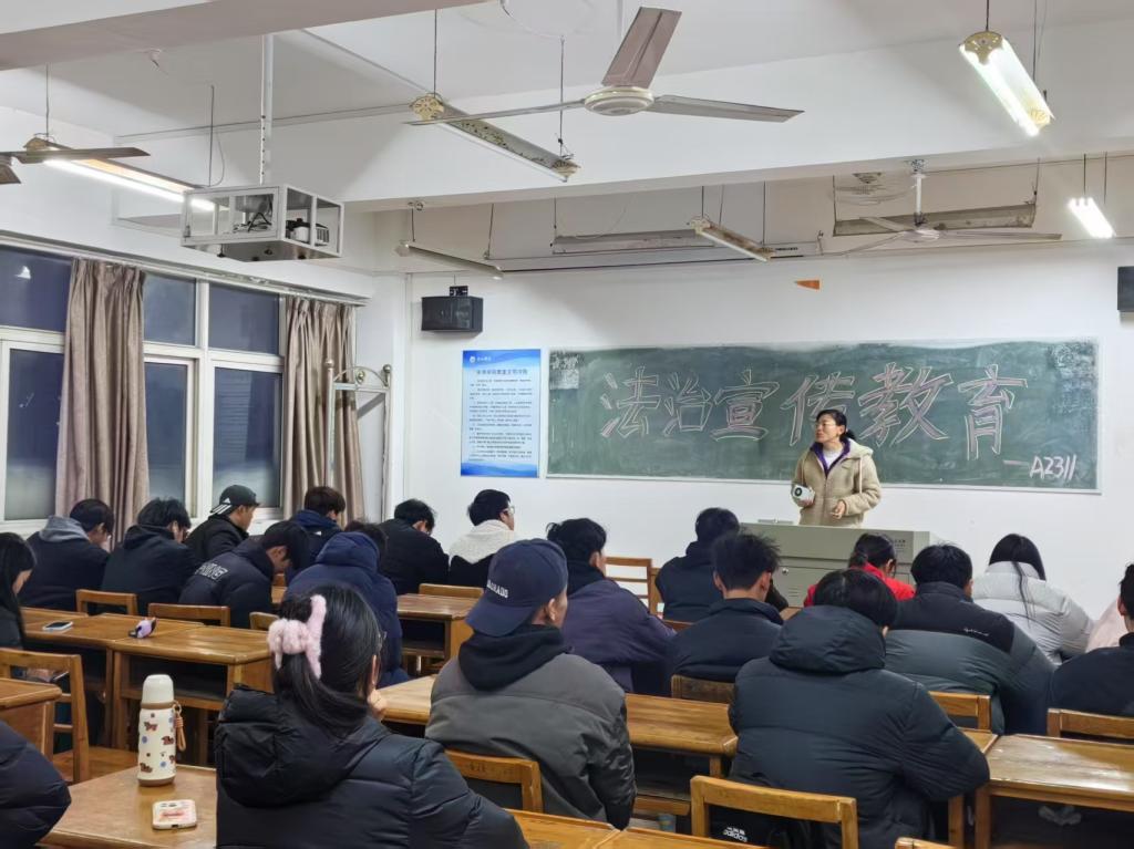 班会上,各班结合学校开展平安建设主题宣传月活动安排,观看法治宣传片《宪法为纲、法治为魂、共筑社会安宁》。各班班主任以“携手共建平安江西、同心共享美好生活”主题结合实际案例,深入浅出地解读了与大学生日常生活紧密相关的法律知识。从校园借贷的风险,到网络信息安全的保护,一个个真实且贴近生活的案例分析,让同学们深刻认识到法律在日常生活中的重要性。大家纷纷意识到,知法、守法、用法不仅是维护社会秩序的必然要求,更是保护自身权益的有力武器。