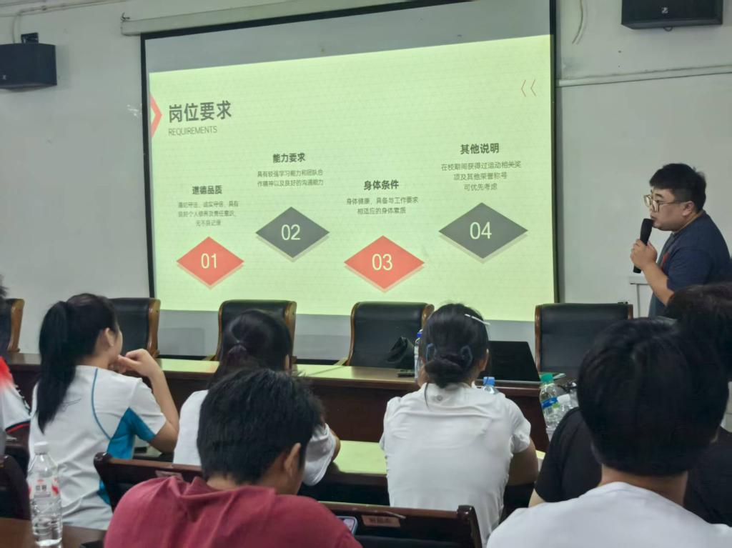 公司宁波橙星体育有限公司招聘负责人通过精彩的PPT 展示,详细介绍了企业的发展历程、企业文化以及业务范围。在招聘岗位介绍环节,公司针对我院学生的专业特点,提供了一系列极具吸引力的岗位,如羽毛球教练、羽毛球赛事策划专员等。对于每个岗位的职责、任职要求以及薪资福利,招聘负责人都进行了耐心细致的讲解,让学生们对岗位有了清晰的认识。