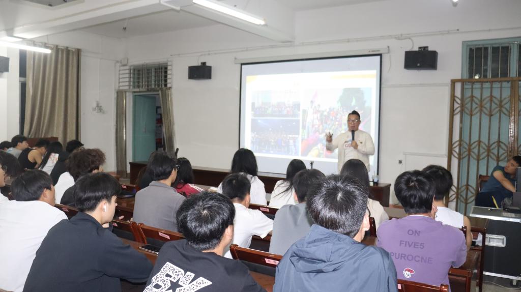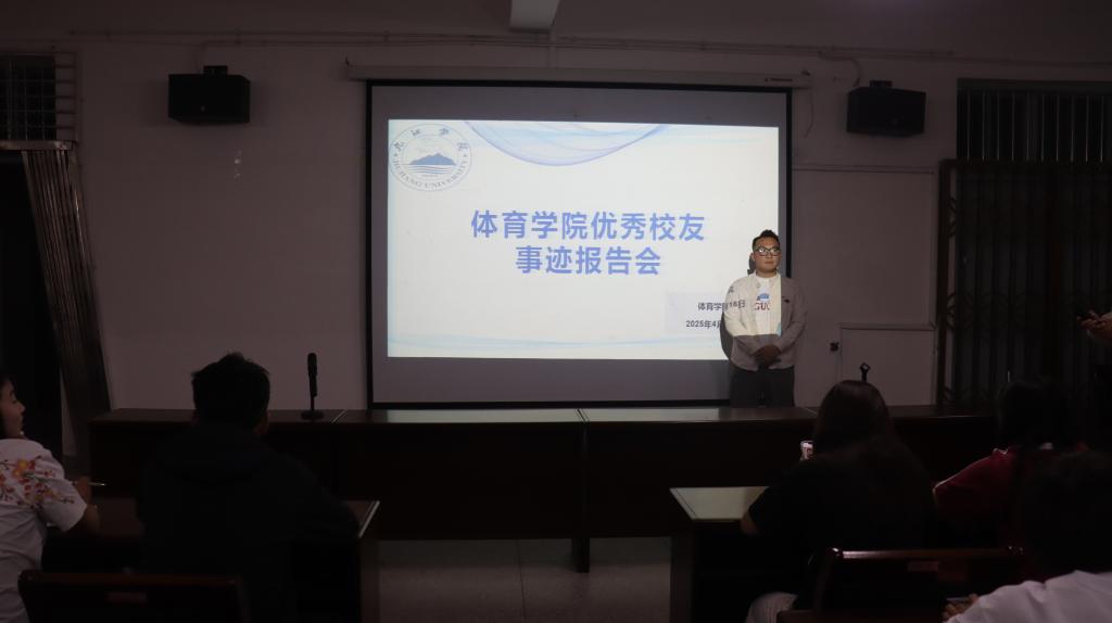 报告会上,陈泽睿结合自己体育专业毕业生的亲身经历,介绍了自己在大学生期间及毕业后的就业经历与经验,分享了自己作为一名体育教师,凭借自己对足球裁判事业的热爱,熬过无数钻研规则、复盘赛事的日夜,成功考取高级裁判员资格,从足球裁判员一路成长为裁判讲师,在各类赛事中崭露头角。