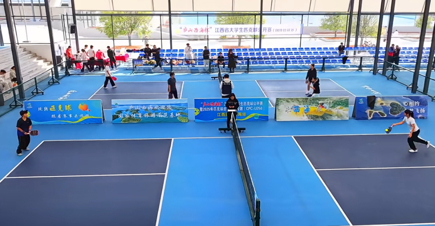 两项赛事分别由庐山西海风景名胜区管理委员会和九江市人民政府主办,前者聚焦高校学子竞技交流,后者面向更广范围匹克球爱好者,赛制设置各有侧重。面对不同赛制的规则差异与高强度的连续作战安排,学子们凭借赛前专项培训中积累的知识储备,灵活调整工作节奏——信任制环节耐心为选手解读规则边界,裁判制环节果断处置各类竞技争议,全程保持专注严谨,确保赛事高效有序推进。